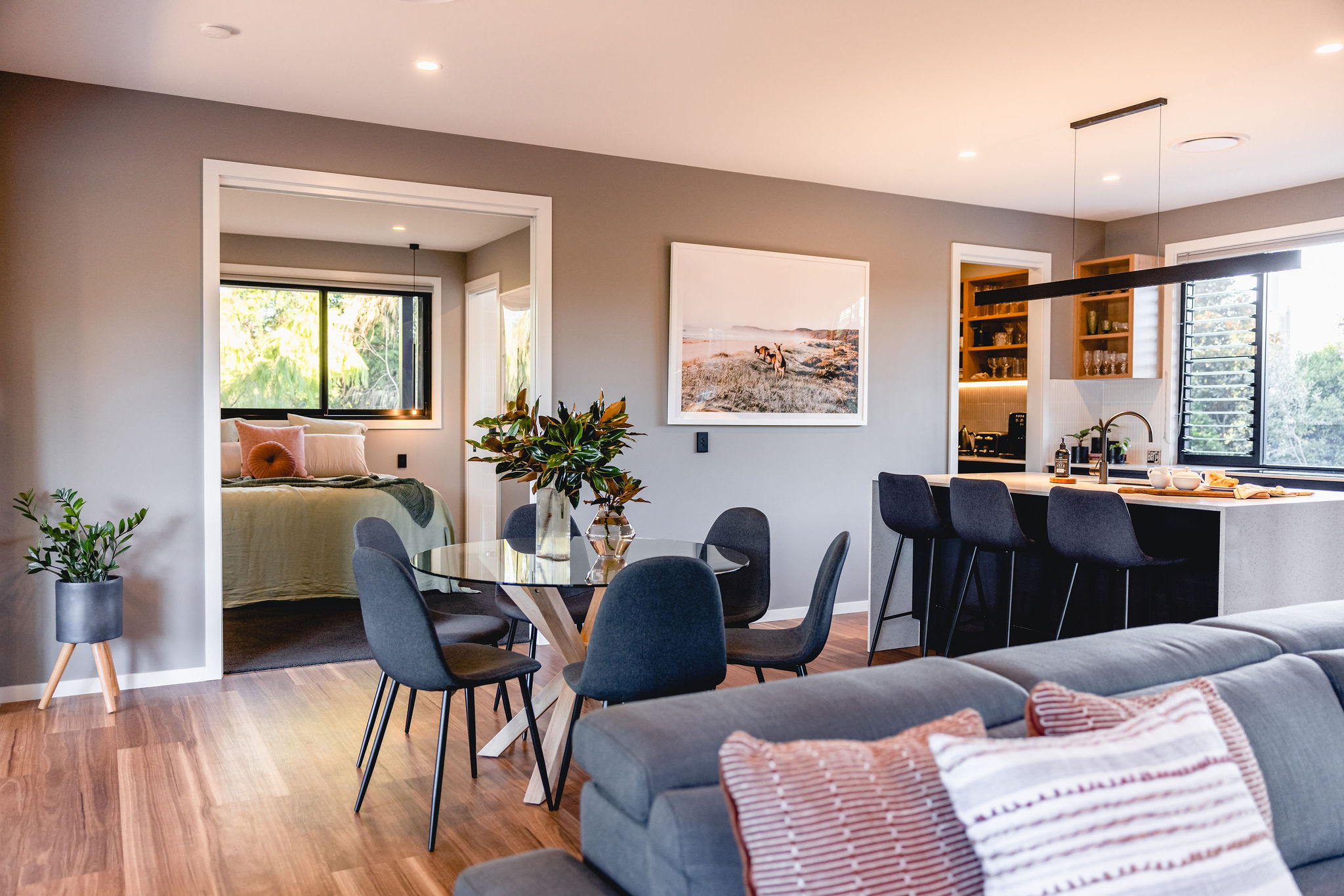 This contemporary dwelling located in Berry is a knock down rebuild.  Not only is she super stylish, but nestles right into the native gardens on the north facing block. A cozy 127 Square meters of perfect zen, this Ironbark clad beauty will stand the test of time. With thoughtful orientation to capture sunlight and garden views, it’s a serene retreat that feels grounded, enduring, and undeniably welcoming.